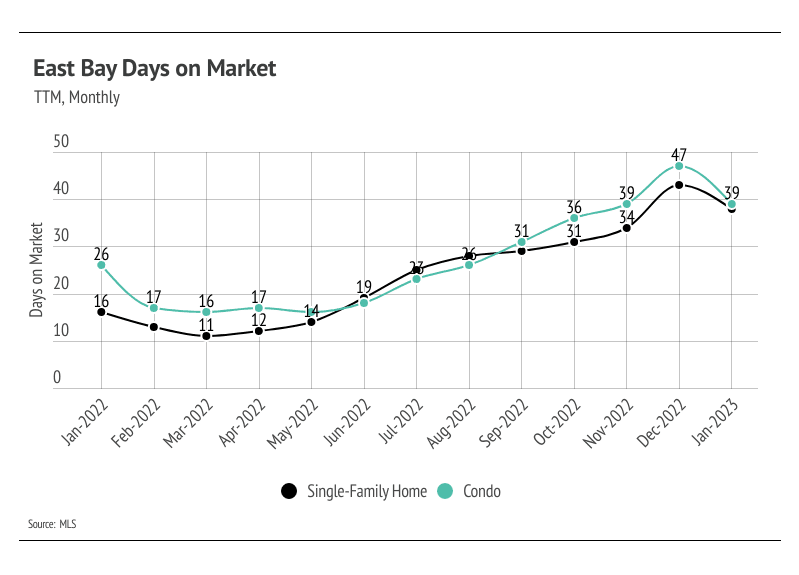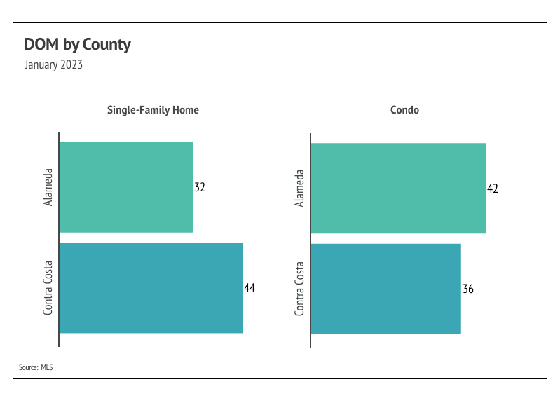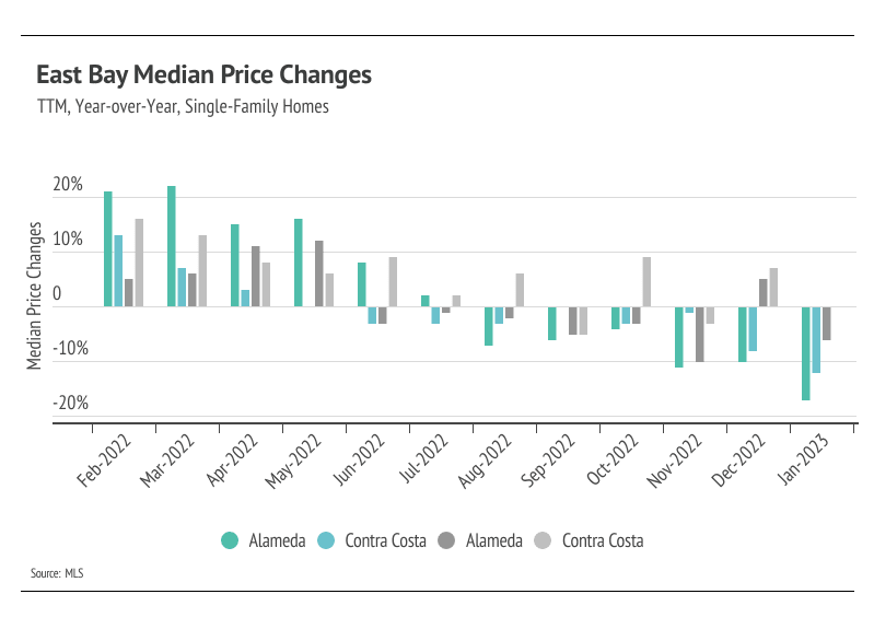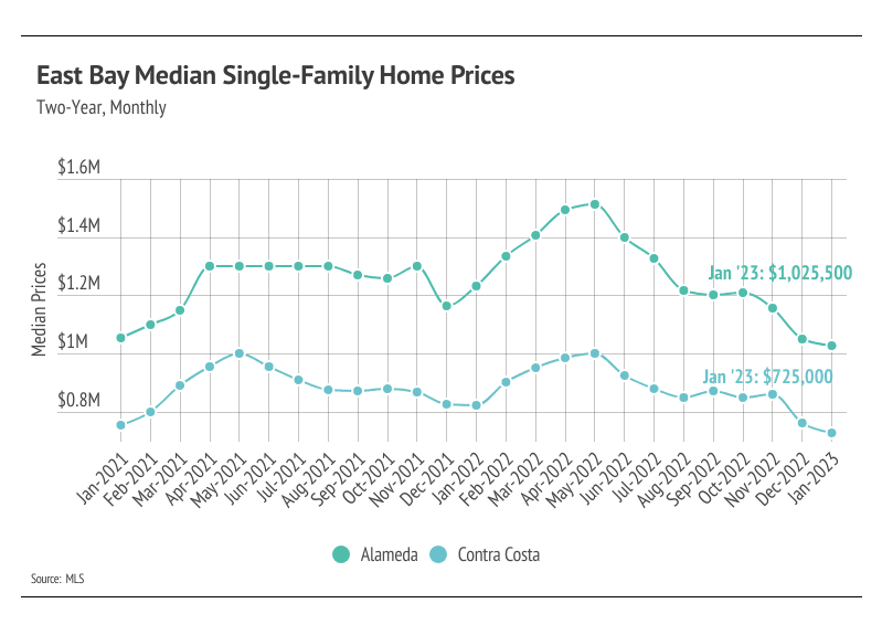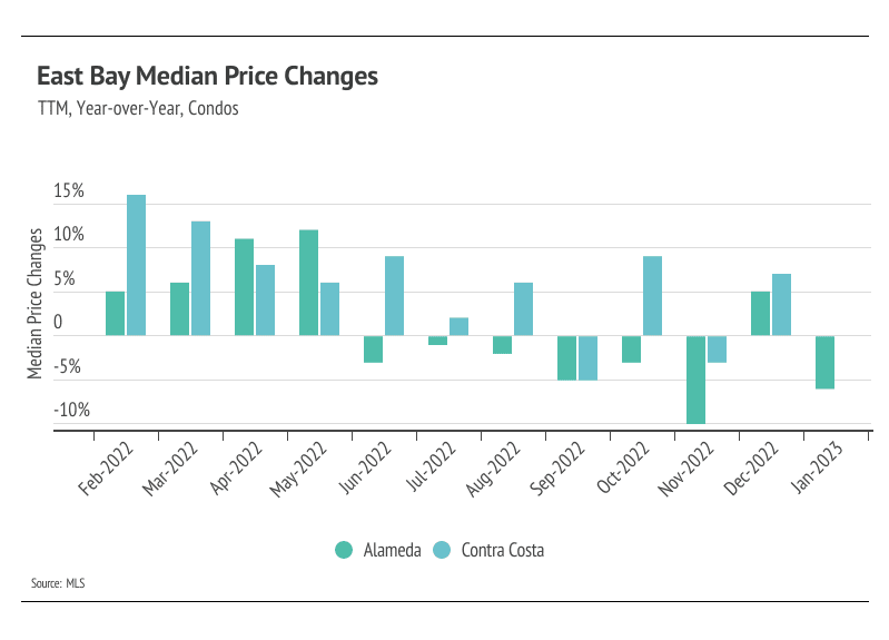 Even with the large contraction in the second half of 2022, single-family home prices increased by 19% in Alameda and 17% in Contra Costa over the past three years, while condo prices increased by 4% in Alameda and 12% in Contra Costa. It’s reasonable to assume that the market will slow after such a dramatic increase in cost, especially since it already has slowed. We’re expecting fewer sellers coming to market and fewer buyers this year.